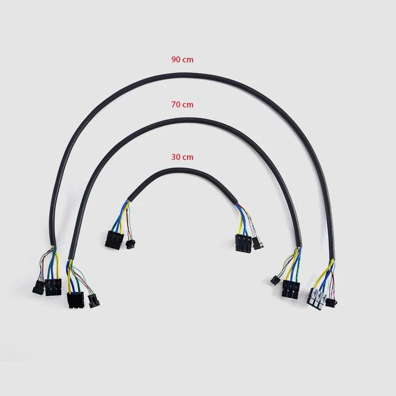 Hinweis: Die oben angegebenen Längen beziehen sich auf die freie Kabellänge ohne Stecker und Buchse. Stecker und Buchse sind jeweils ca. 50 mm lang, so dass noch ca. 100 mm hinzukommen.