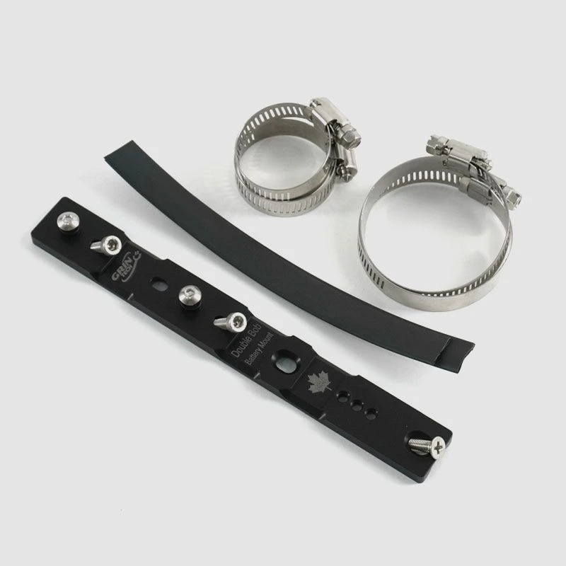 Falls sich an dem Unterrohr Ihres Fahrrads keine Gewindeösen befinden, können Sie mit dem Double Bob dennoch ganz leicht Ihren Akku im Rahmendreieck befestigen. Der Double Bob wird mit einer Schiene mit drei M5 Gewindebohrungen geliefert, an der Sie unsere V2 Akkuhalterungen anschrauben können. Diese Schiene wird mithilfe zweier Schlauchschellen am Unterrohr montiert. Sie eignet sich zur Montage an Rohren mit einem Durchmesser bis ca. 57 mm. Die Höhe der Schiene betrÀgt ca. 5 mm.